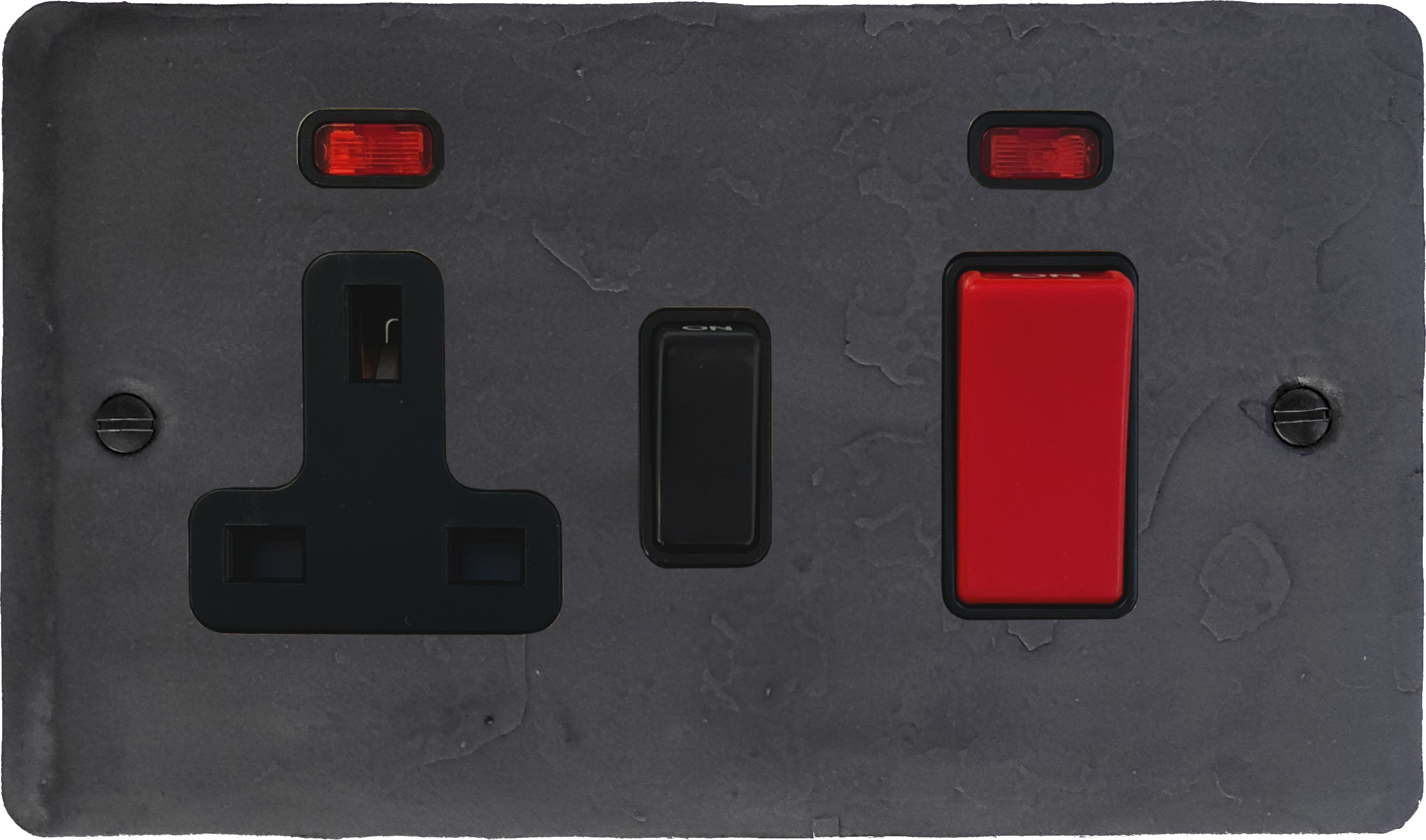 Flat Rustic Pewter Cooker Switch with Socket (Black Switch) FL.29B.RP