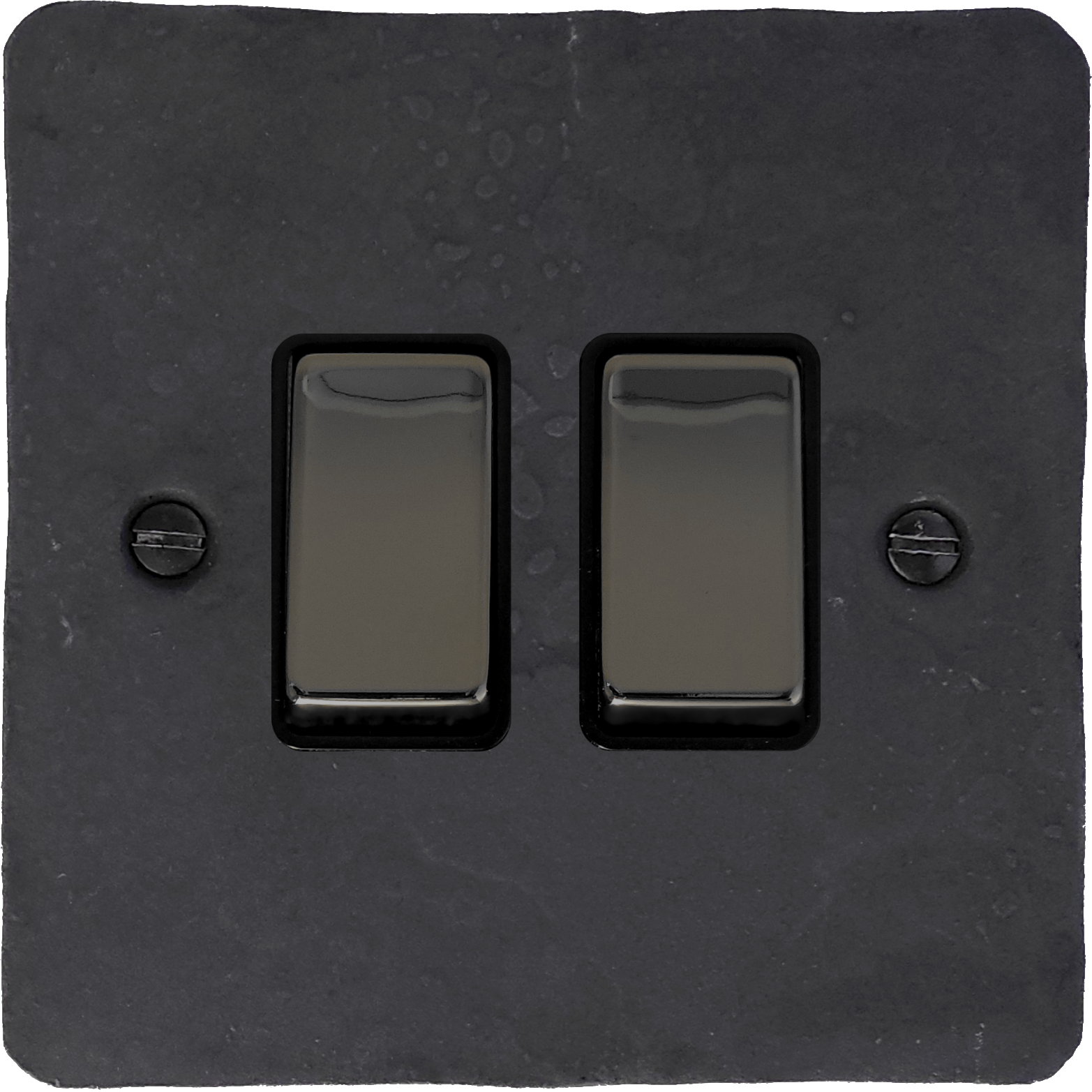 Flat Rustic Pewter Light Switch (2 Gang/Black Nickel Switches) FL.302BN.RP