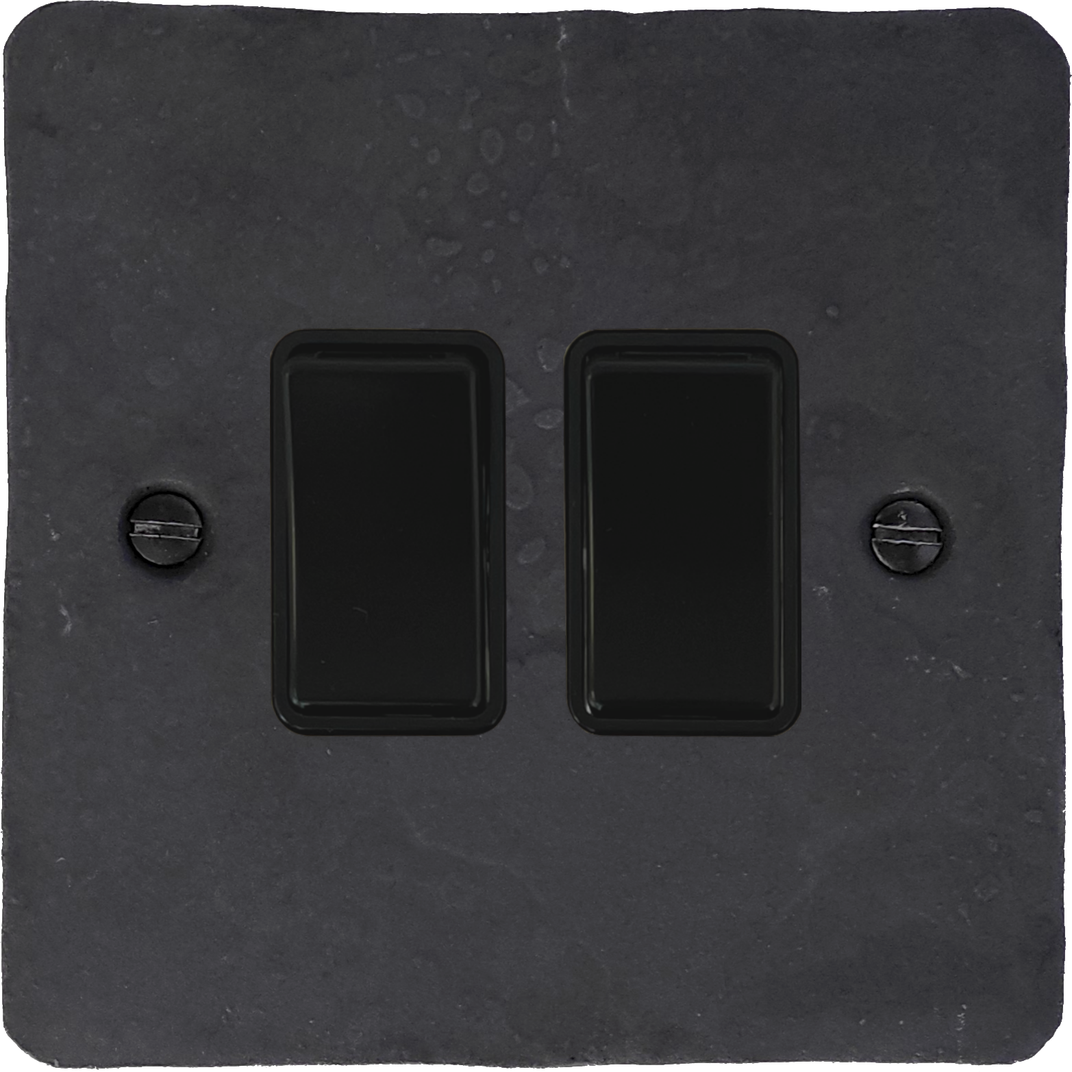Flat Rustic Pewter Light Switch (2 Gang/Black Switches) FL.2B.RP