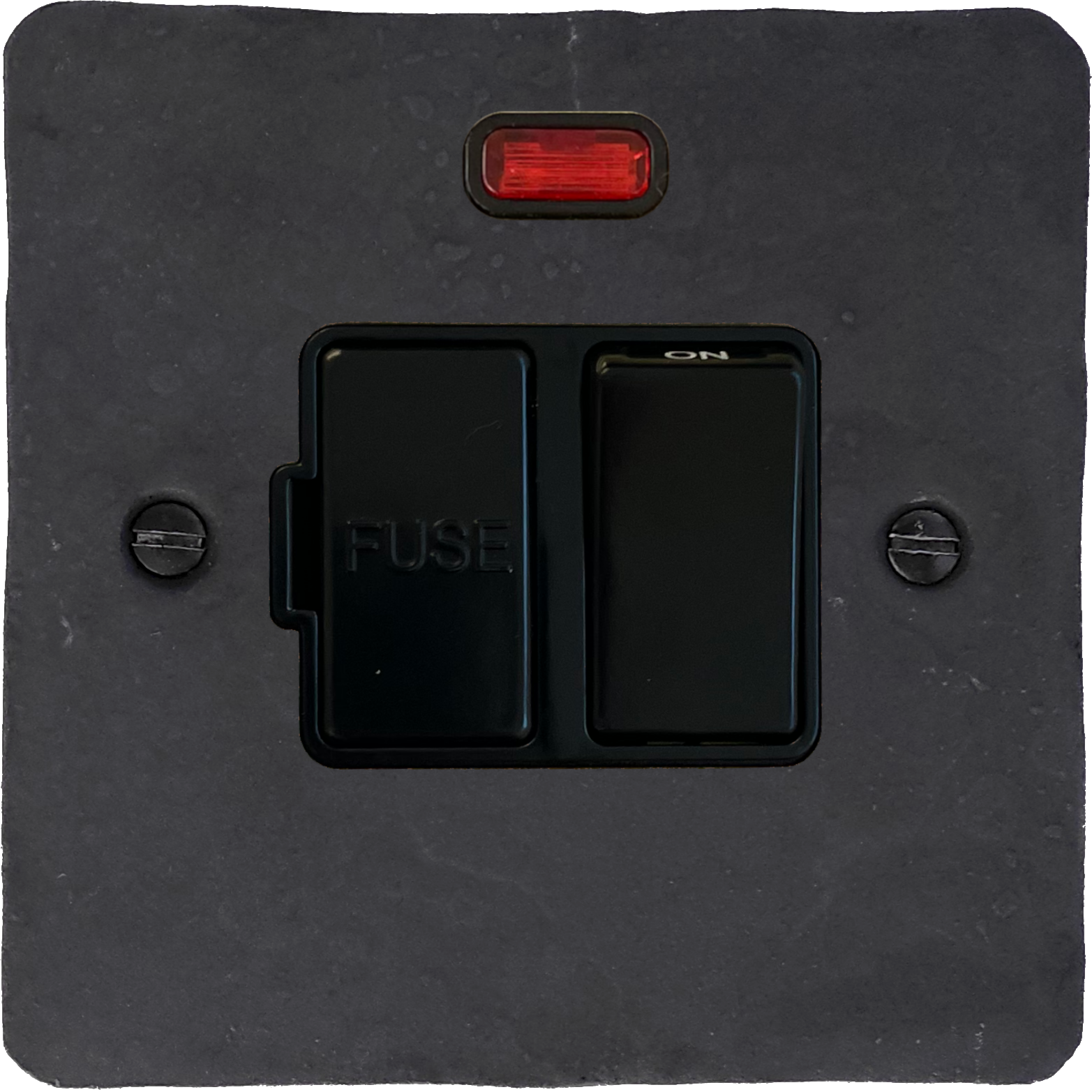 Flat Rustic Pewter Switched Fused Spur with Neon (Black Switch) FL.27B.RP