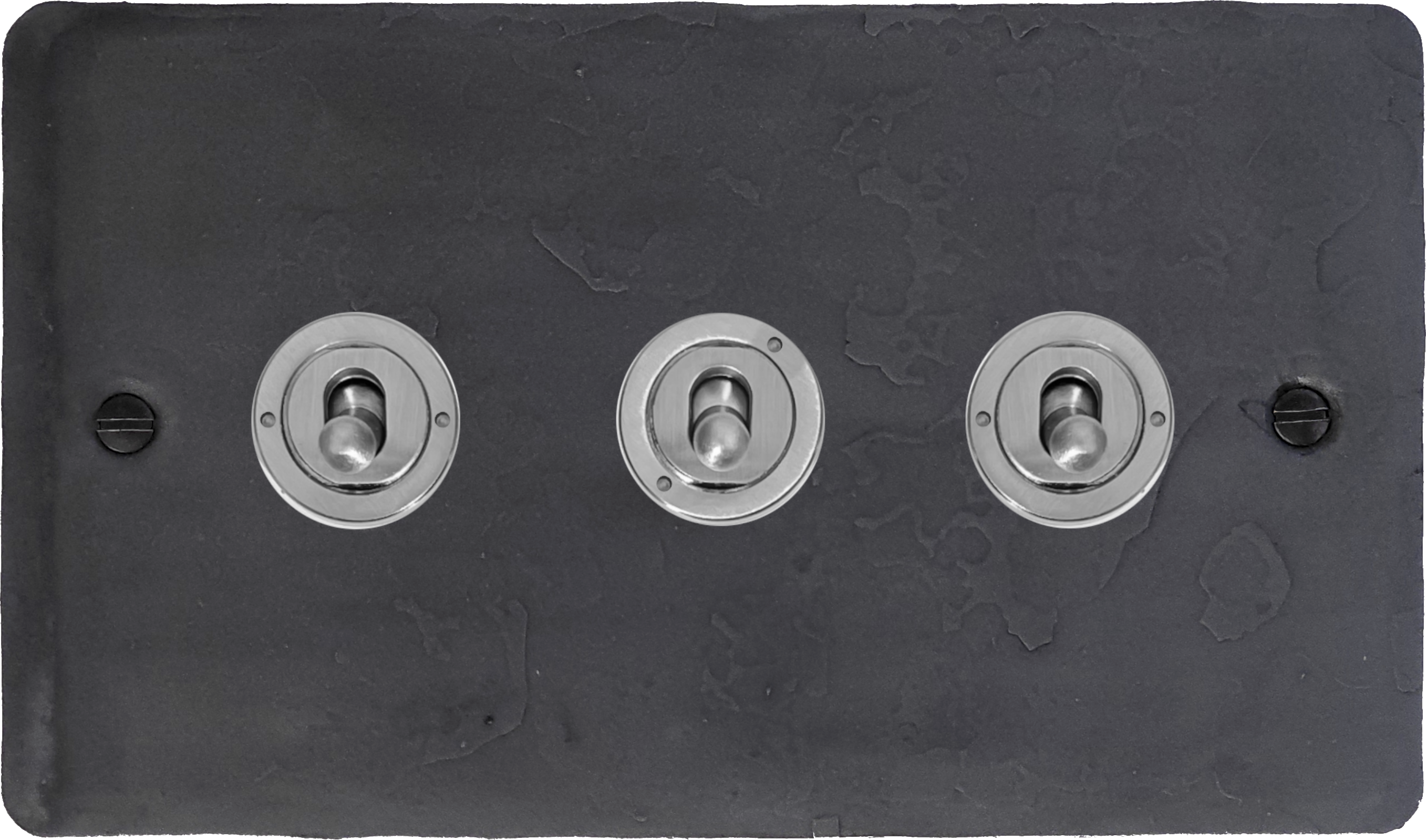 Flat Rustic Pewter Toggle Switch (3 Gang/Brushed Steel Toggle) FL.383SS.RP