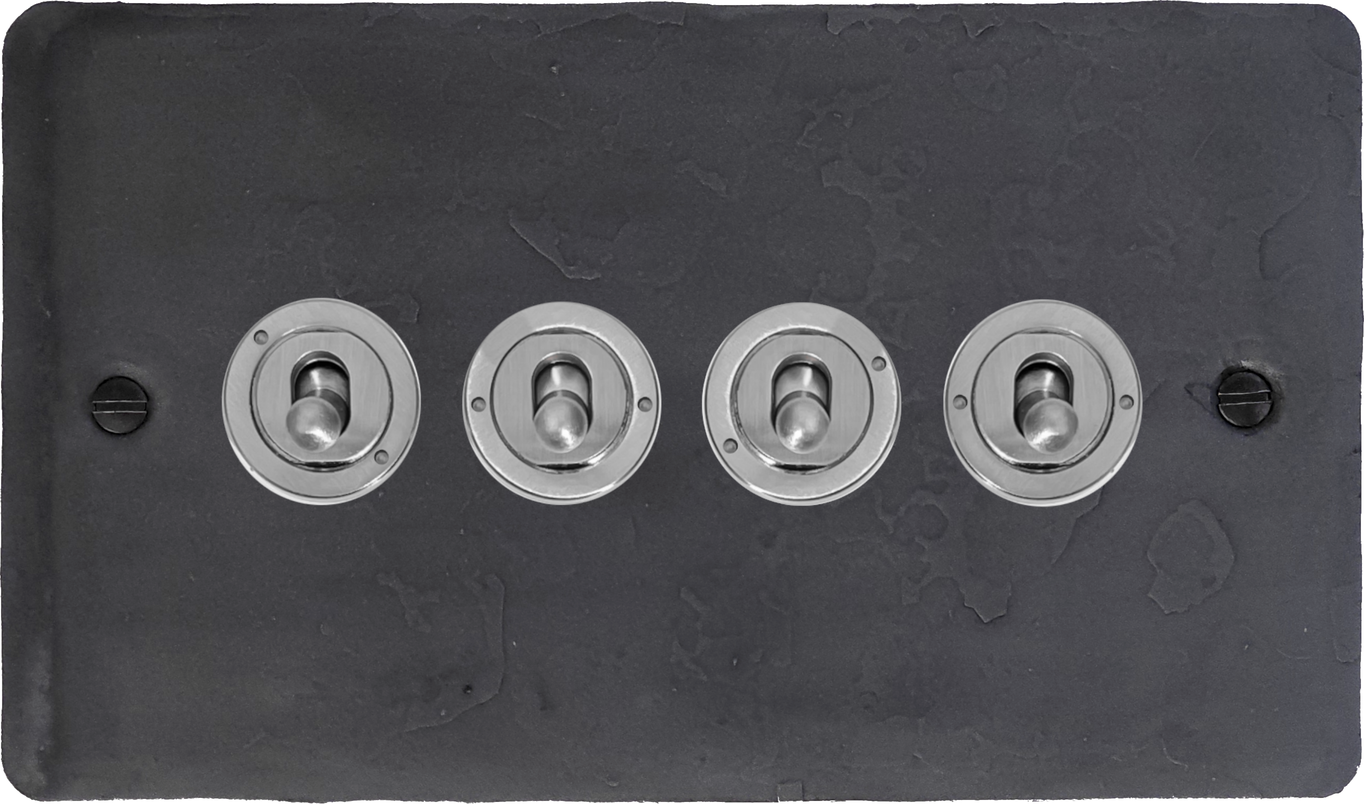 Flat Rustic Pewter Toggle Switch (4 Gang/Brushed Steel Toggle) FL.384SS.RP