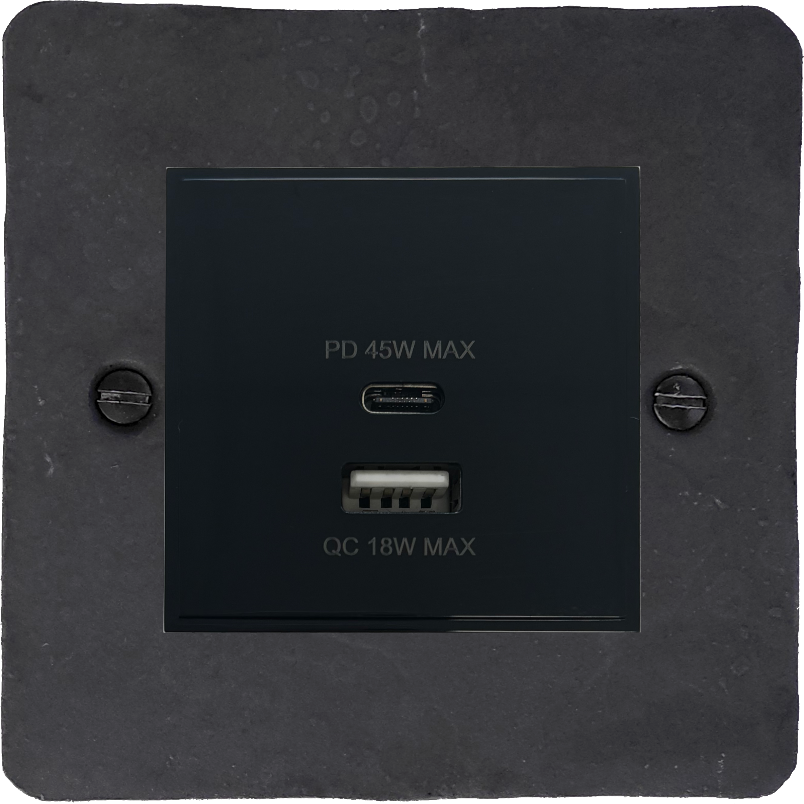 Flat Rustic Pewter USB Charger (Dual USB A + C Quick Charge) (1 Gang/Black Insert) FL.43B.RP