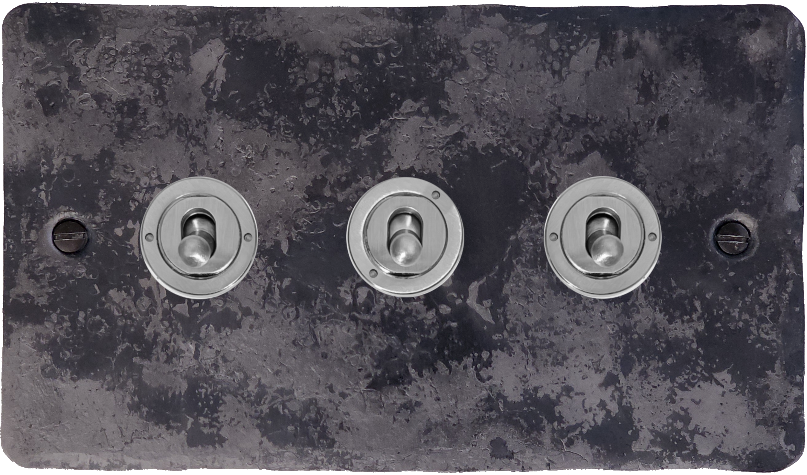 Flat Rustic Toggle Switch (3 Gang/Brushed Steel Toggle) - FR383-SC