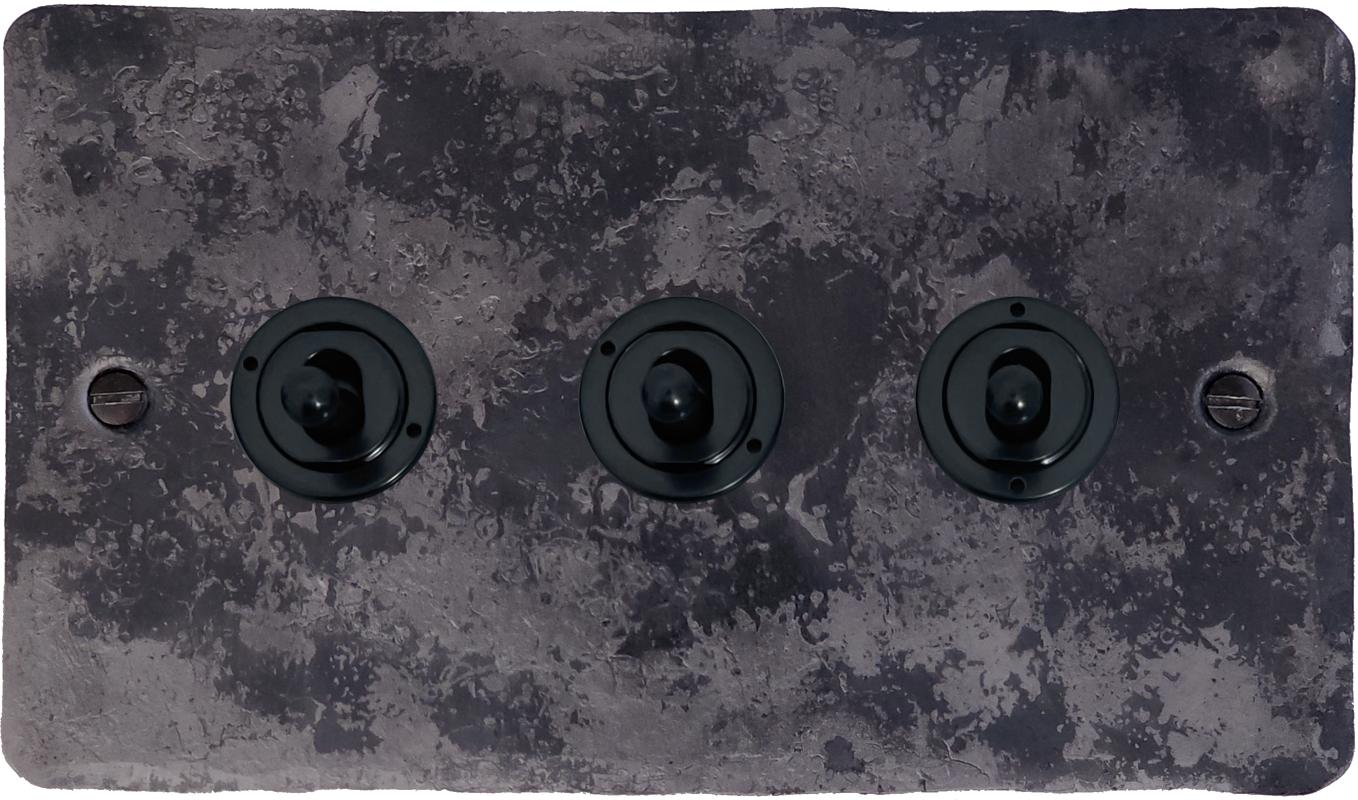 Flat Rustic Toggle Switch (3 Gang/Black Toggle) FL.383FBK.R