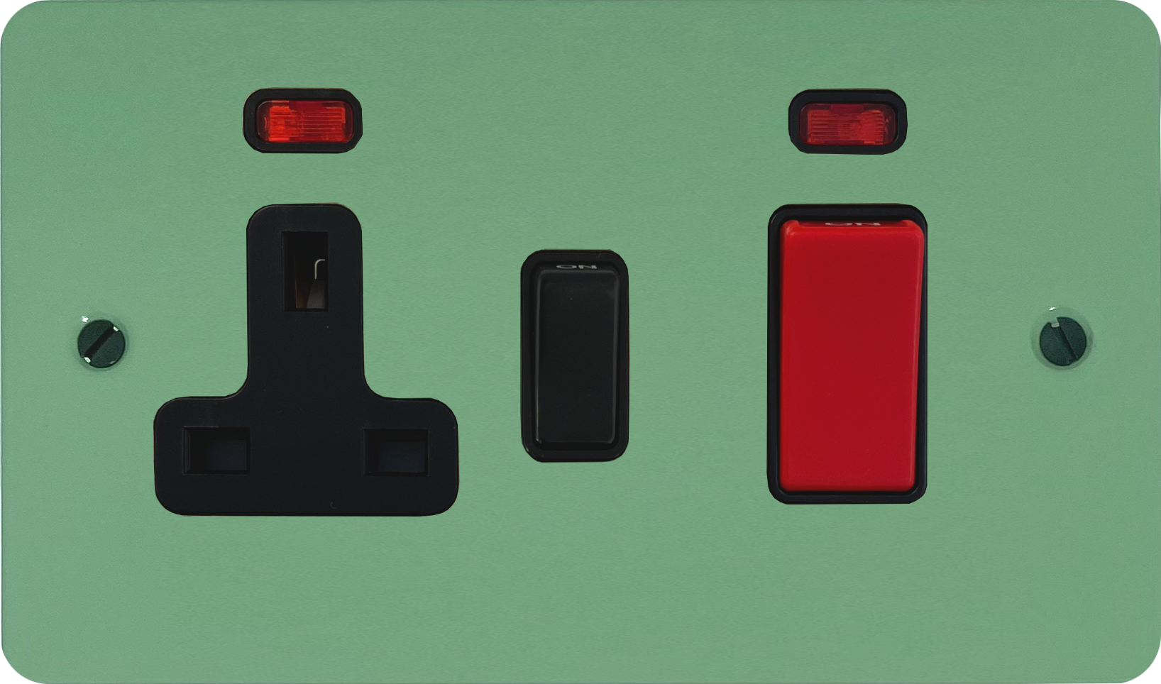 Flat Sage Green Cooker Switch with Socket (Black Switch) FL.29B.SG