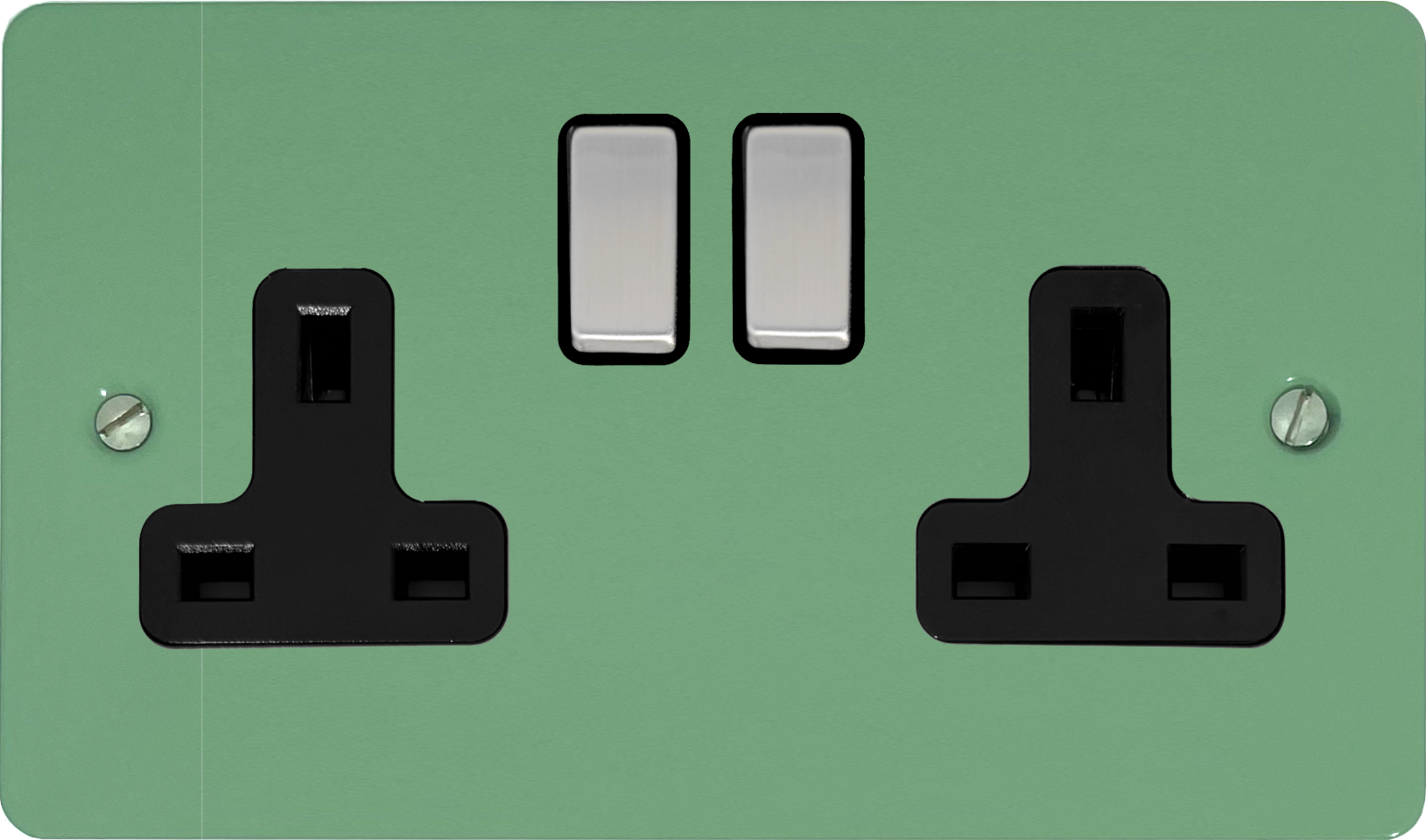 Flat Sage Green Double Socket (Black Insert/Steel Switches) - FSG310-SC