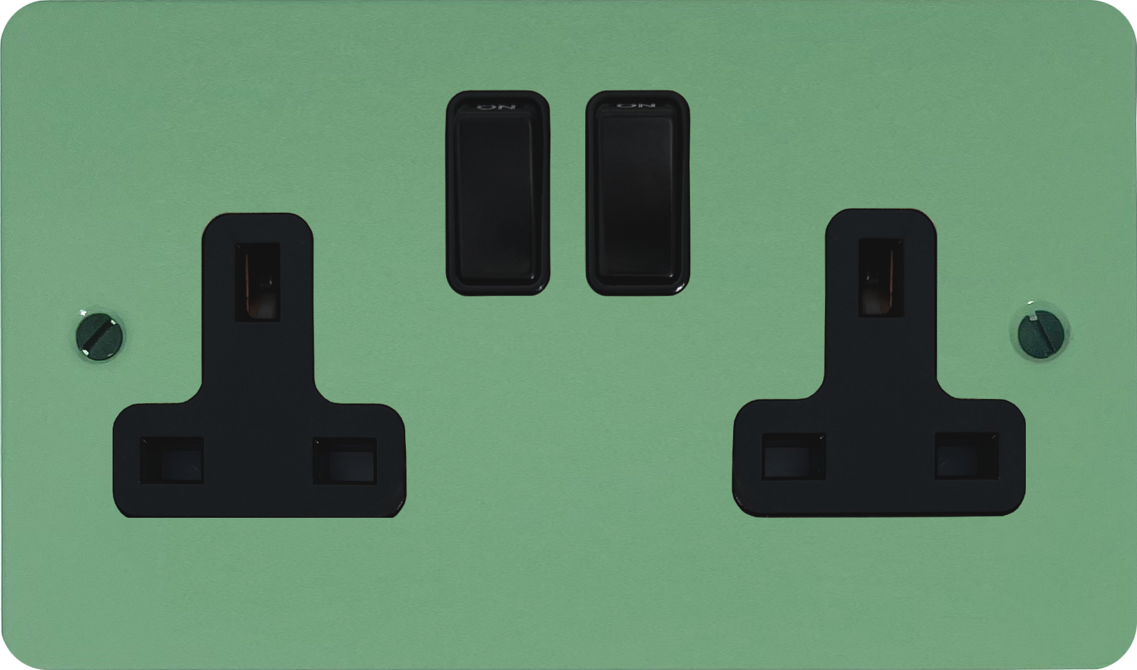 Flat Sage Green Double Socket (Black Switch) FL.10B.SG
