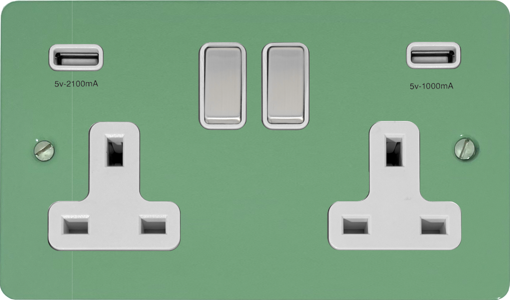 Flat Sage Green Double Socket with USB (White Insert/Steel Switches) FL.2910SC.SG