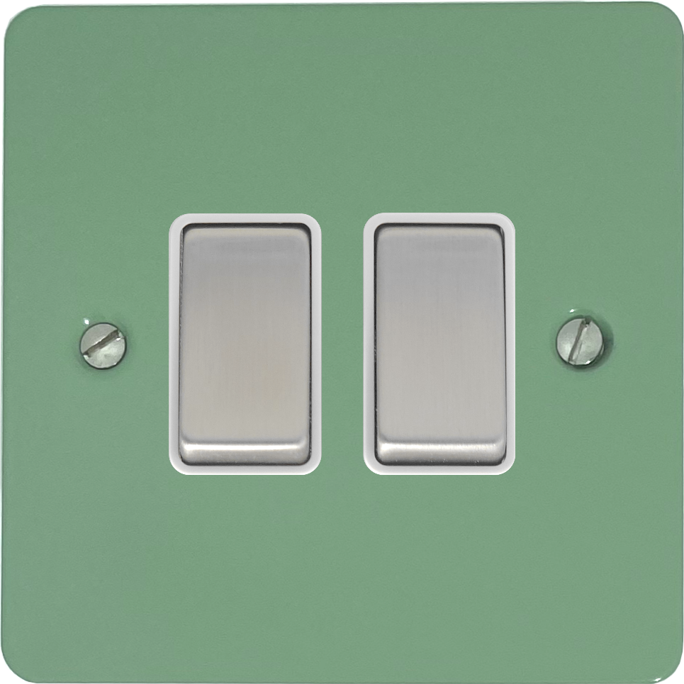 Flat Sage Green Light Switch (2 Gang/White Insert/Steel Switches) FL.202SC.SG