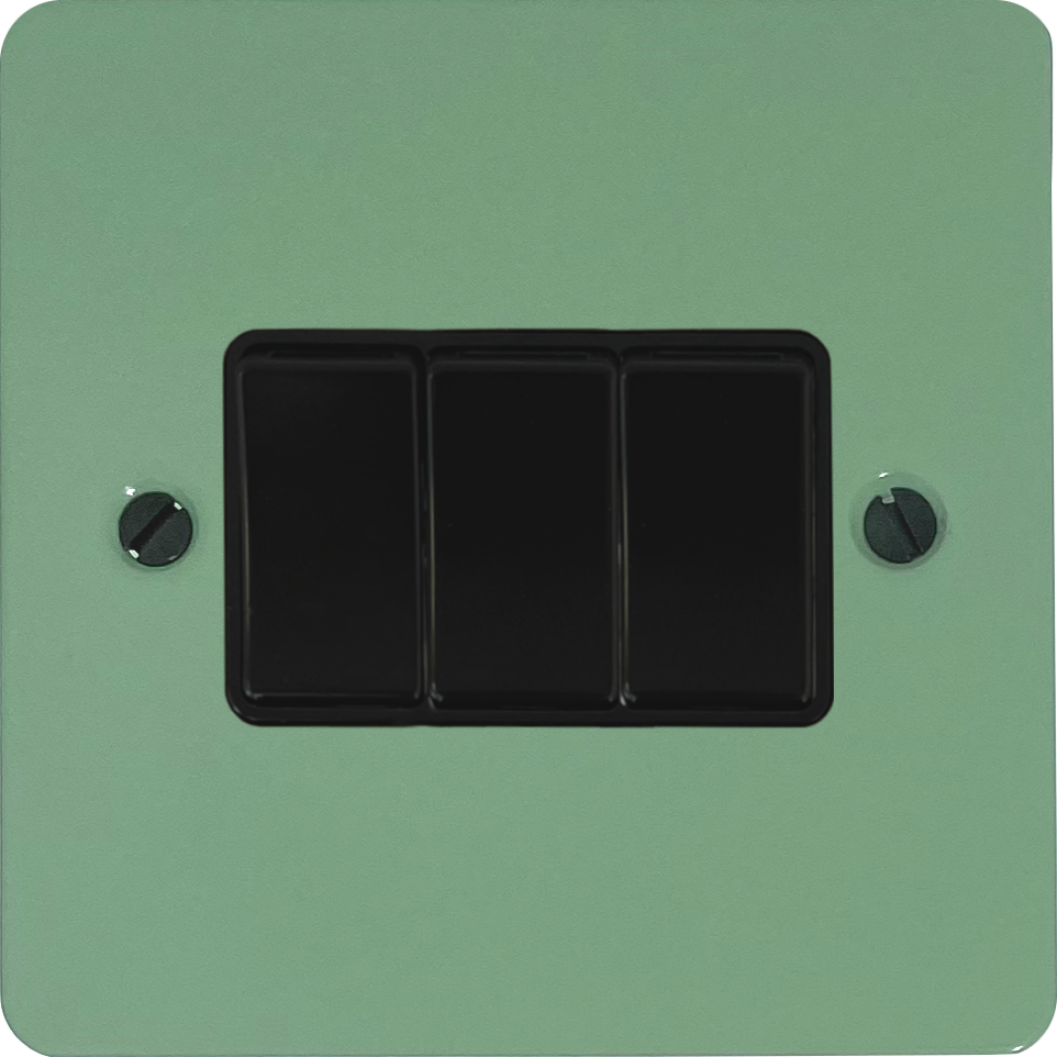 Flat Sage Green Light Switch (3 Gang/Black Switches) - FSG3B