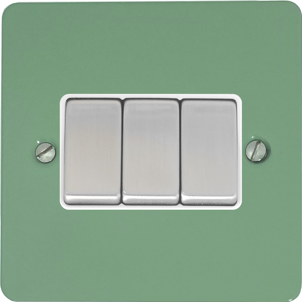 Flat Sage Green Light Switch (3 Gang/White Insert/Steel Switches) FL.203SC.SG