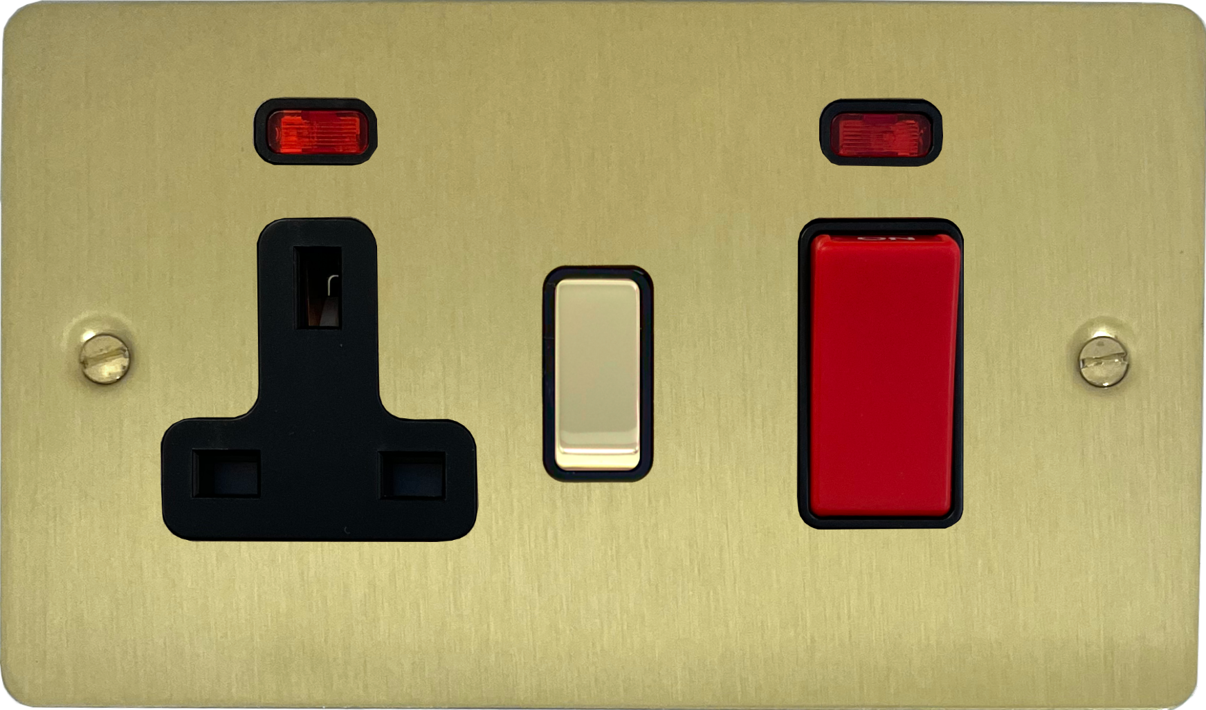 Flat Satin Brass Cooker Switch with Socket FL.329.SB