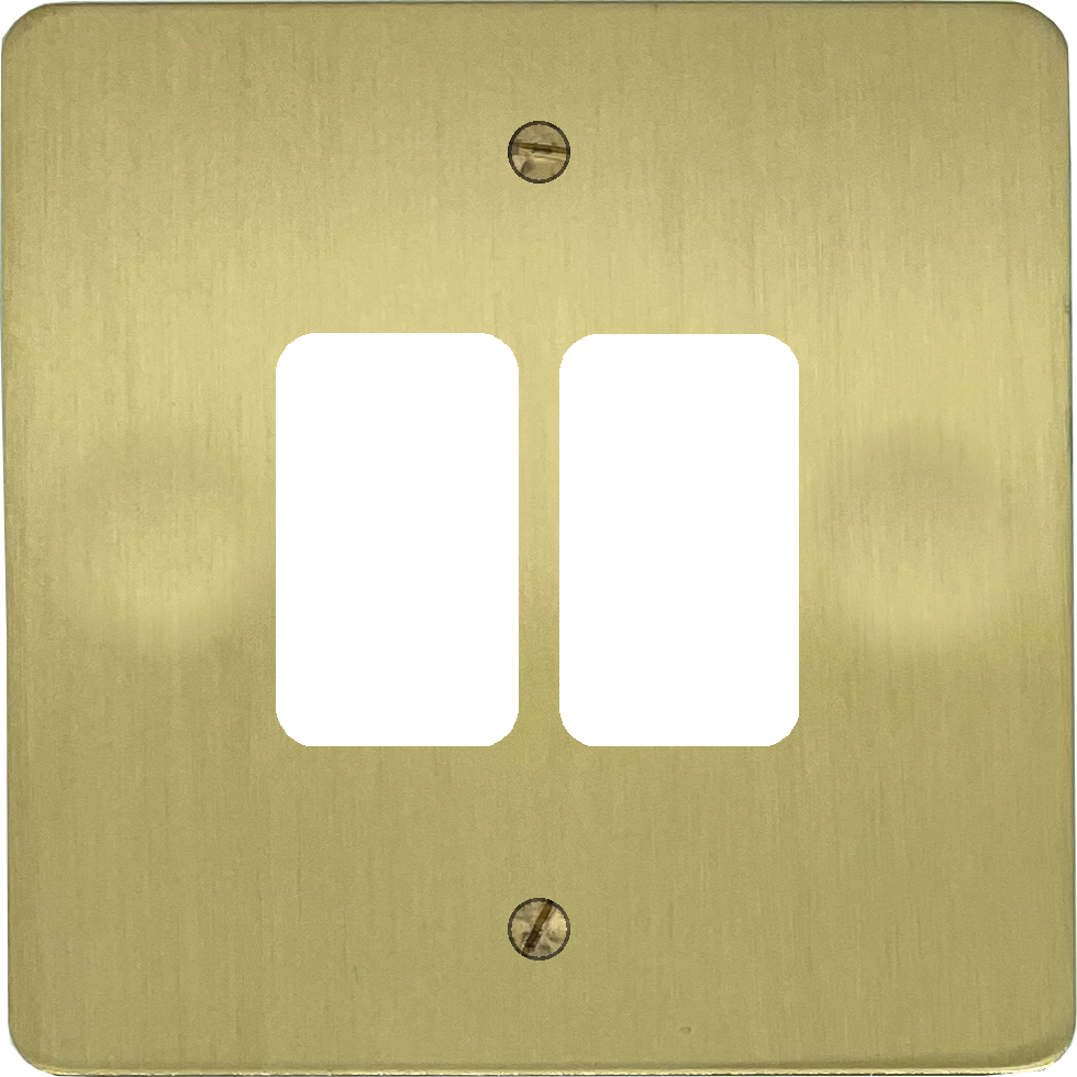 Flat Satin Brass Grid Switch (2 Gang)