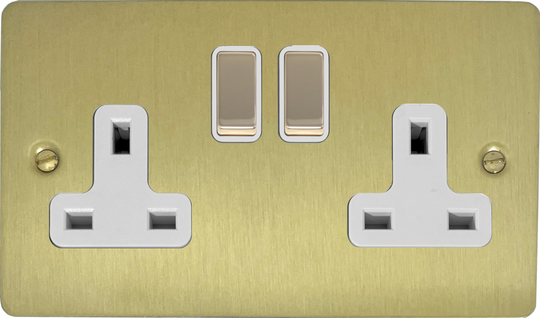 Flat Satin Brass Socket (2 Gang/White Inserts) - FSB210