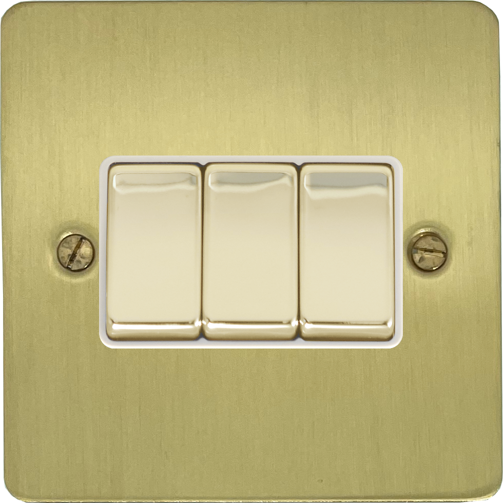 Flat Satin Brass Switch (3 Gang/White Inserts) FL.203.SB