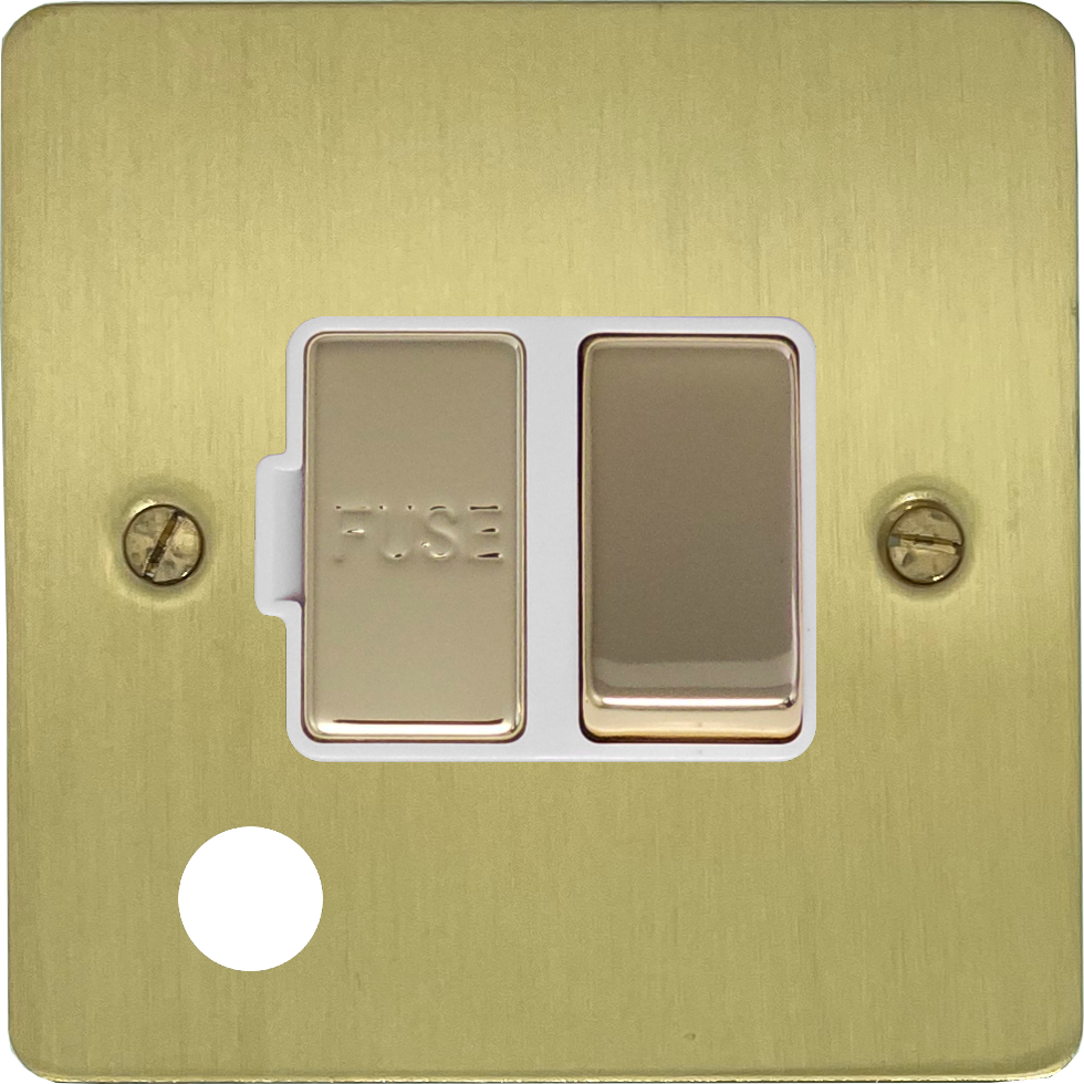 Flat Satin Brass Switched Fused Spur with Flex Outlet (White Inserts) FL.256.SB