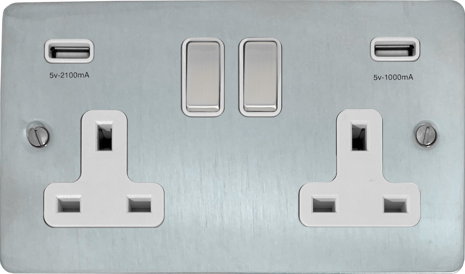 Flat Satin Chrome Double Socket with USB (White Insert/Satin Chrome Switches) - FSC2910
