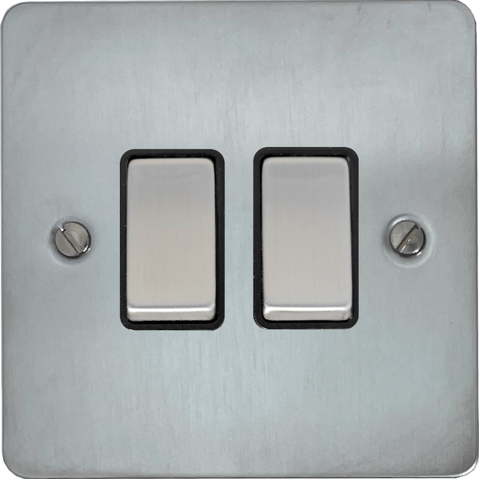 Flat Satin Chrome Light Switch (2 Gang/Black Insert/Satin Chrome Switches) FL.302.SC