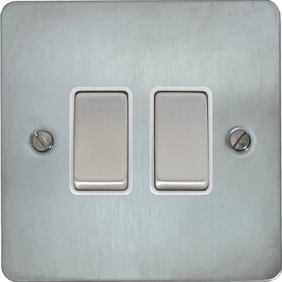 Flat Satin Chrome Light Switch (2 Gang/White Insert/Satin Chrome Switches) FL.202.SC