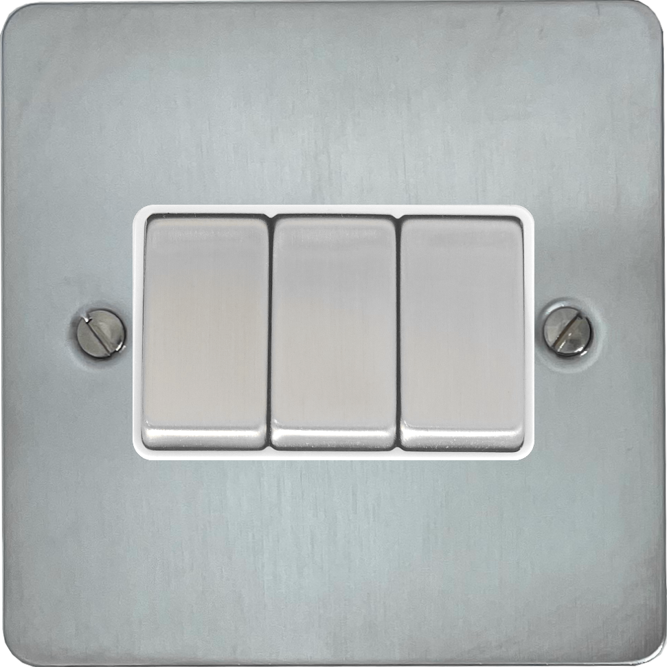 Flat Satin Chrome Light Switch (3 Gang/White Insert/Satin Chrome Switches) FL.203.SC