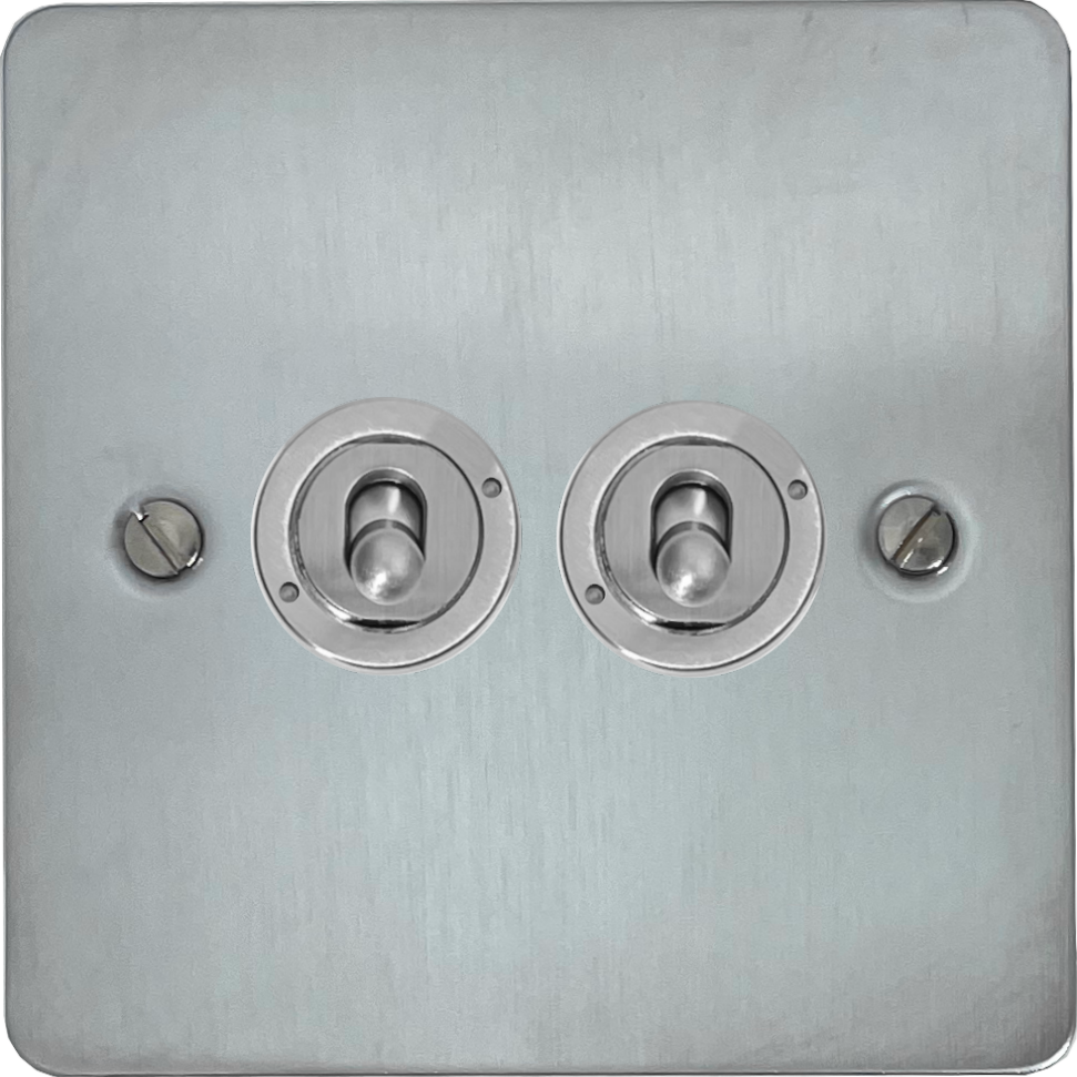 Flat Satin Chrome Toggle Switch (2 Gang/Brushed Steel Toggle) FL.382.SC