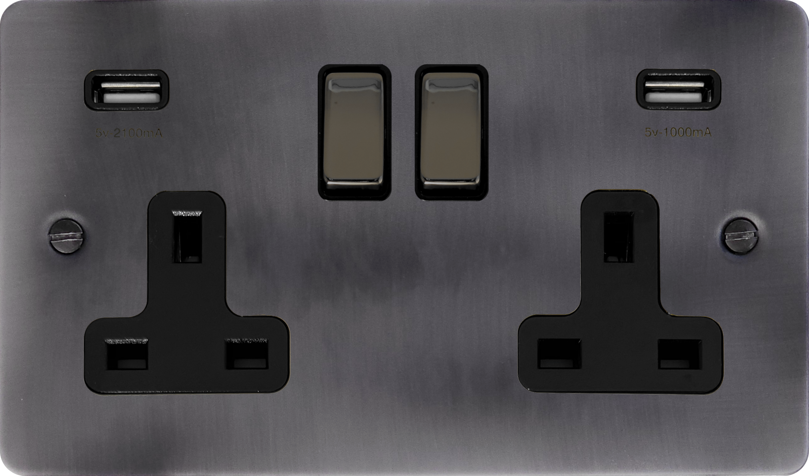 Flat Slate Effect Double Socket with USB (Black Nickel Switches) - FSL3910