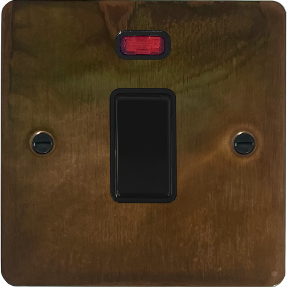Flat Tarnished Copper 20A DP Switch with Neon (Black Switch) FL.26B.TC