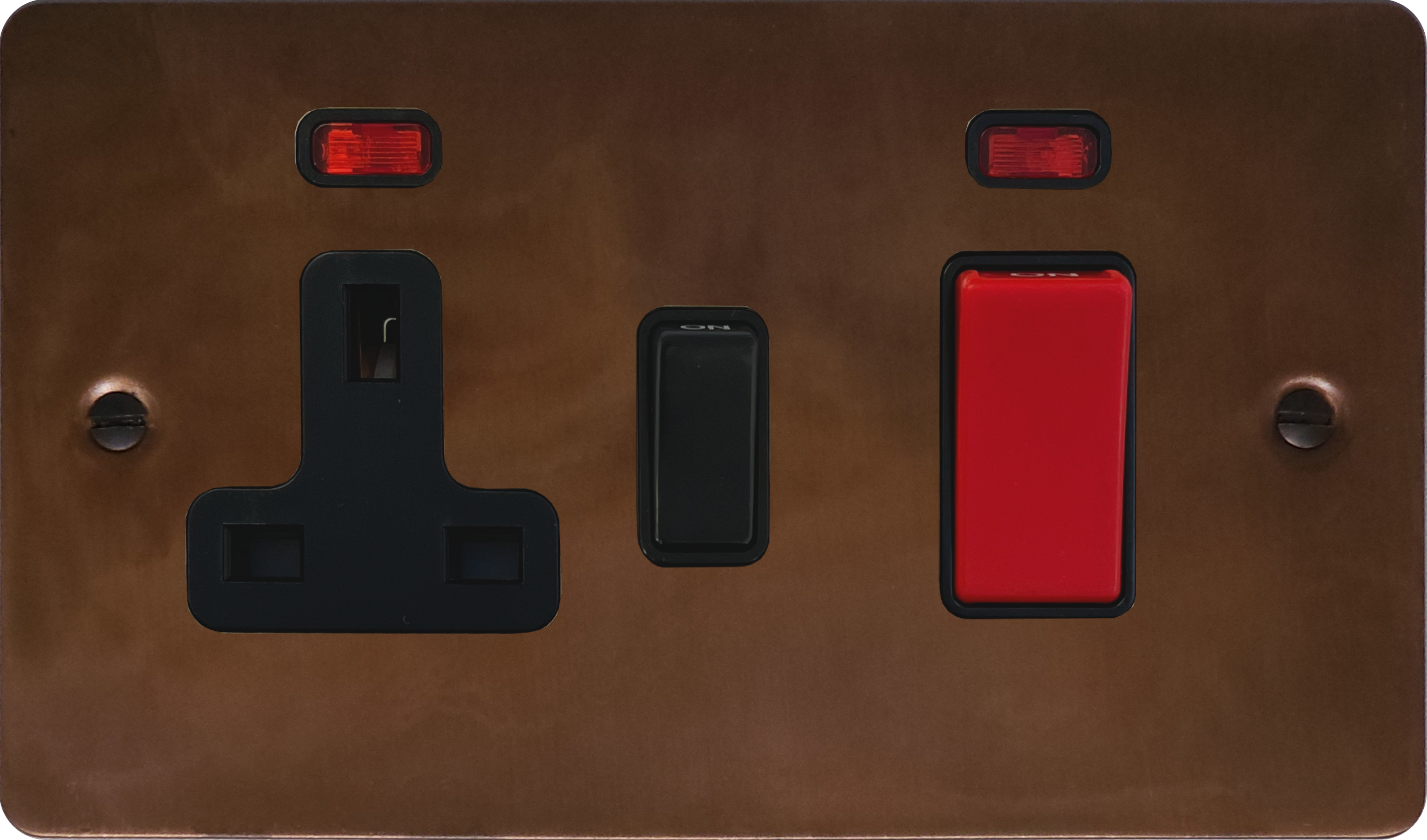 Flat Tarnished Copper Cooker Switch with Socket (Black Switch) - FTC29B
