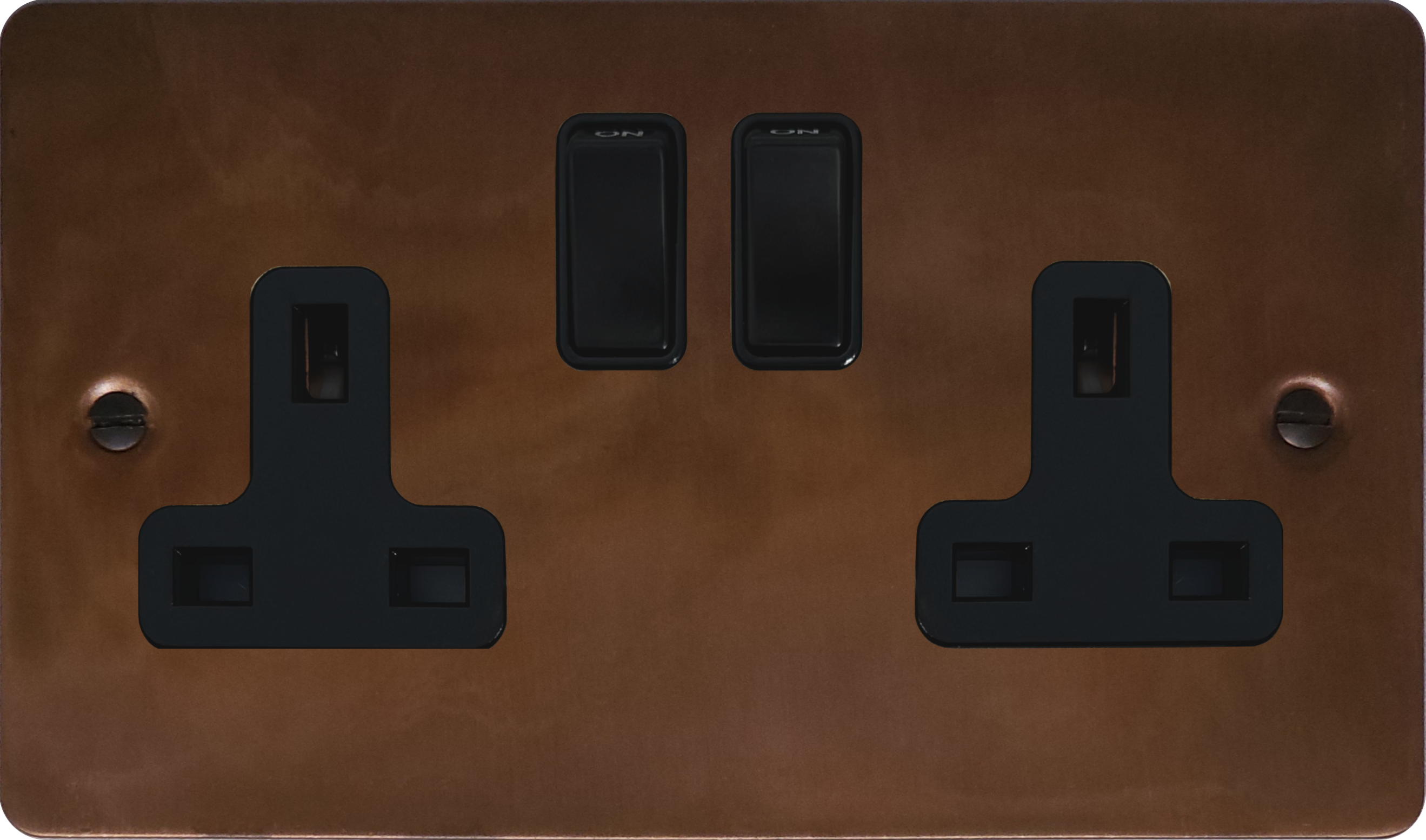 Flat Tarnished Copper Double Socket (Black Switch) FL.10B.TC
