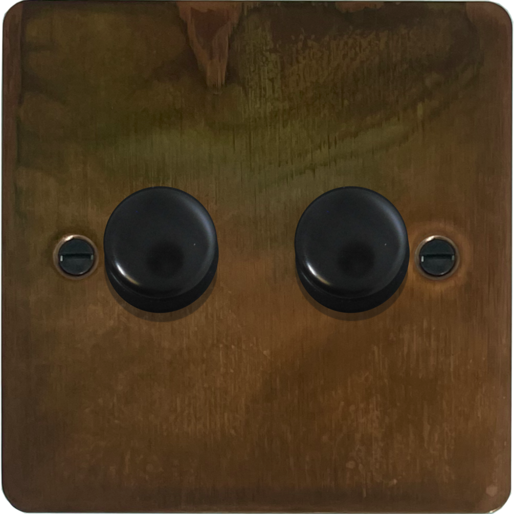 Flat Tarnished Copper LED Dimmer (2 Gang) - FTC522