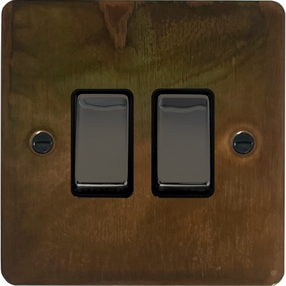 Flat Tarnished Copper Light Switch (2 Gang/Black Nickel Switch) FL.302.TC