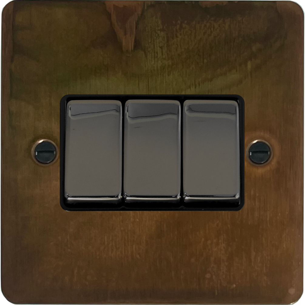 Flat Tarnished Copper Light Switch (3 Gang/Black Nickel Switch) FL.303.TC