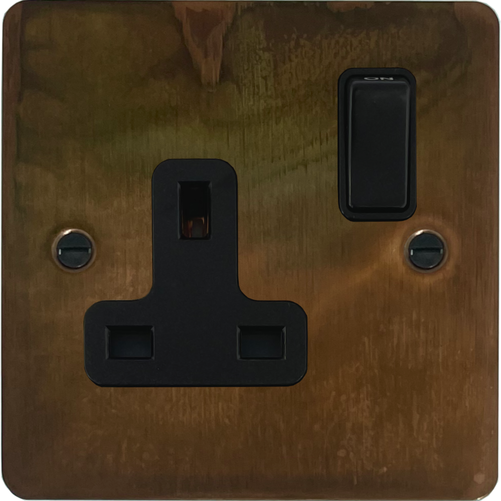 Flat Tarnished Copper Single Socket (Black Switch) FL.9B.TC