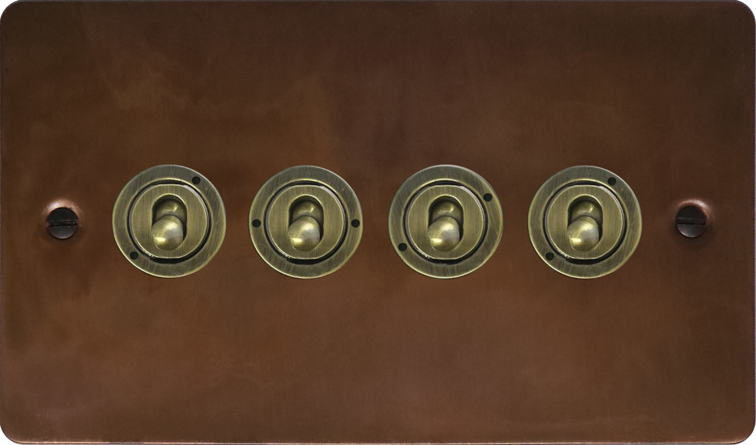 Flat Tarnished Copper Toggle Switch (4 Gang/Antique Brass Toggle) FL.384AB.TC