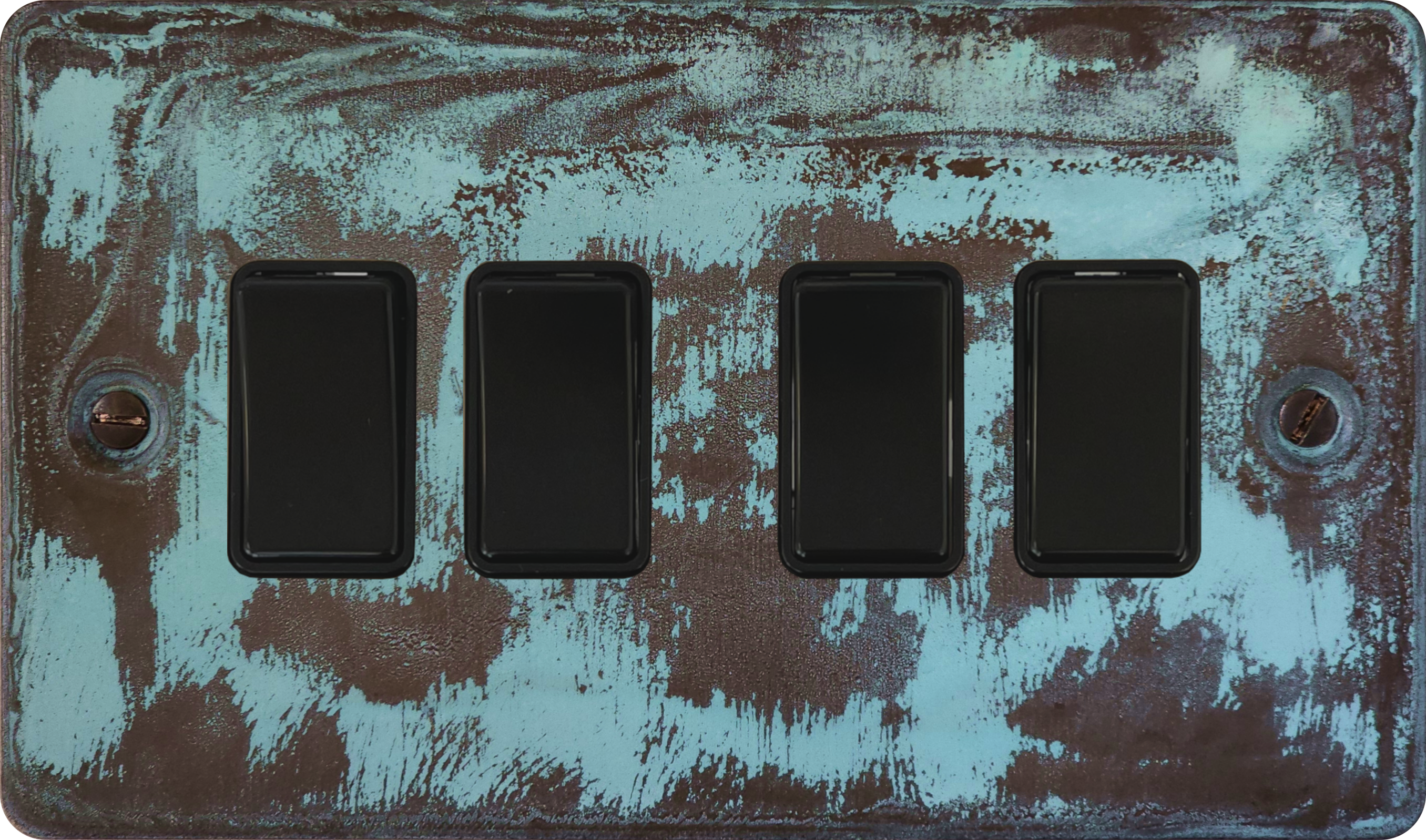 Flat Verdigris Light Switch (4 Gang/Black Switch) FL.4B.V