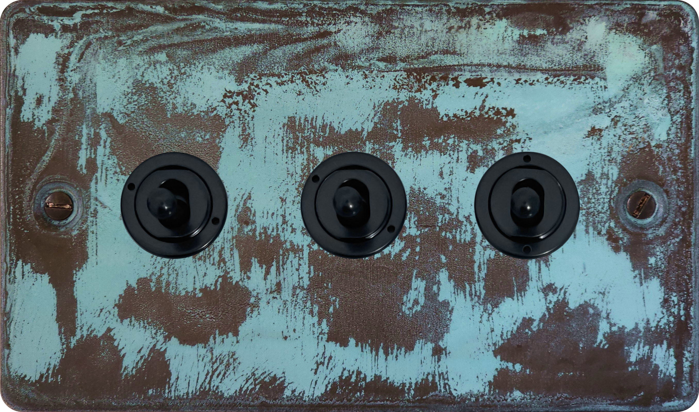 Flat Verdigris Toggle Switch (3 Gang/Black Toggle) FL.383FBK.V