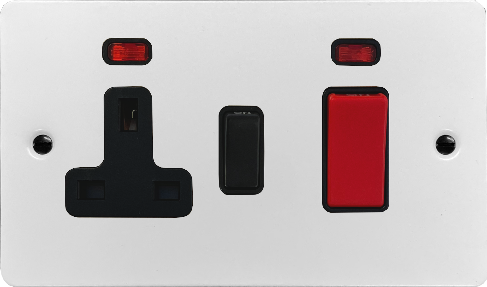 Flat White Cooker Switch with Socket (45 Amp/Black Insert) FL.29B.W
