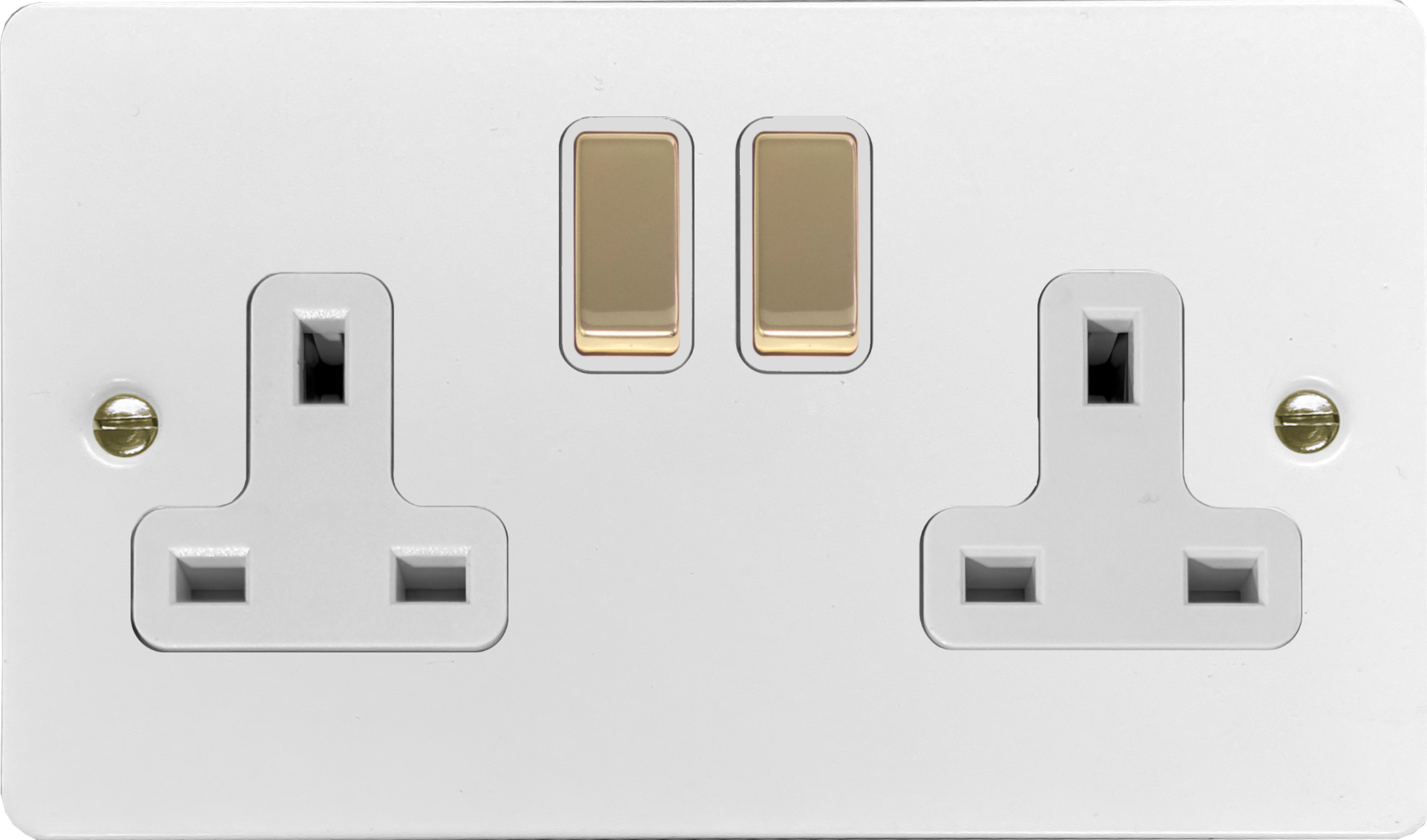 Flat White Socket (Double Socket/Polished Brass Switches) FL.210PB.W