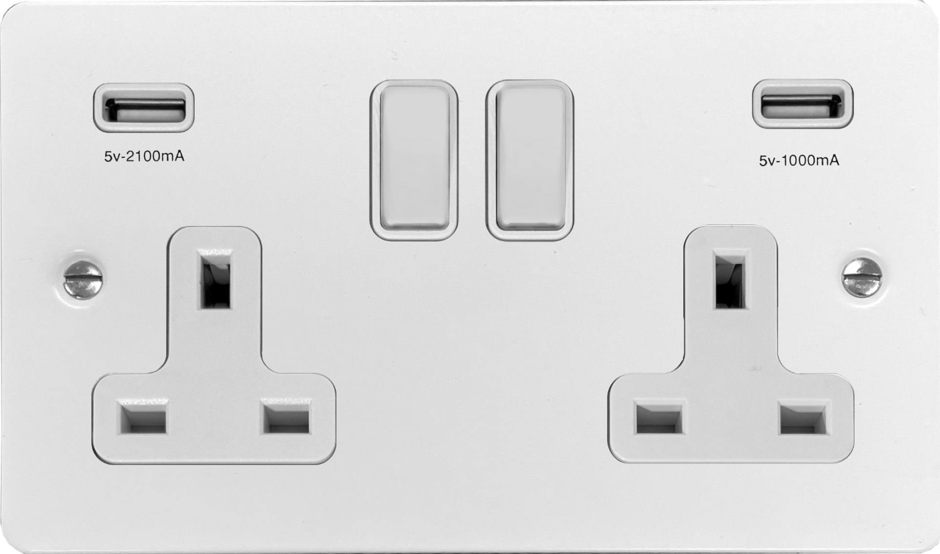Flat White Socket with USB (Double Socket/White Switches) - FW910W