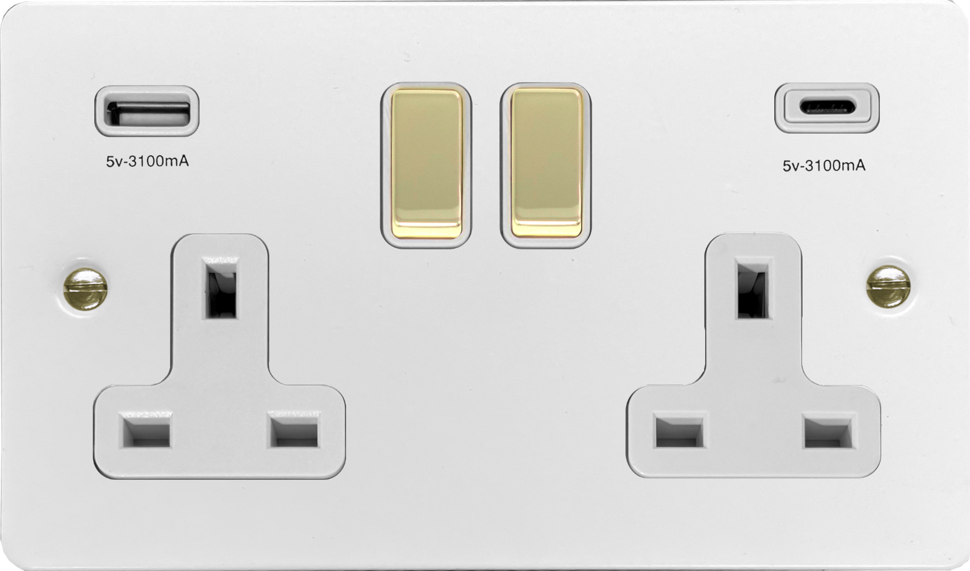 Flat White Socket with USB (USB-A and USB-C/White Insert/Polished Brass Switches) FL.2911PB.W
