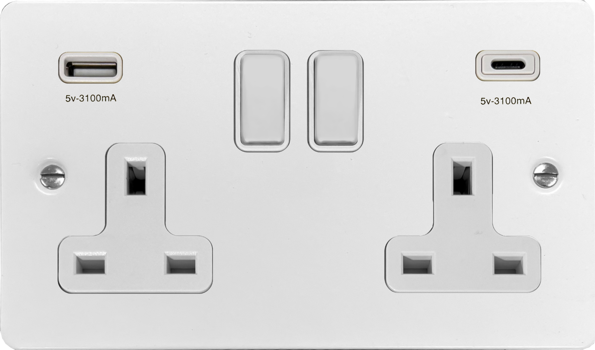 Flat White Socket with USB (USB-A and USB-C/White Switches) FL.911W.W