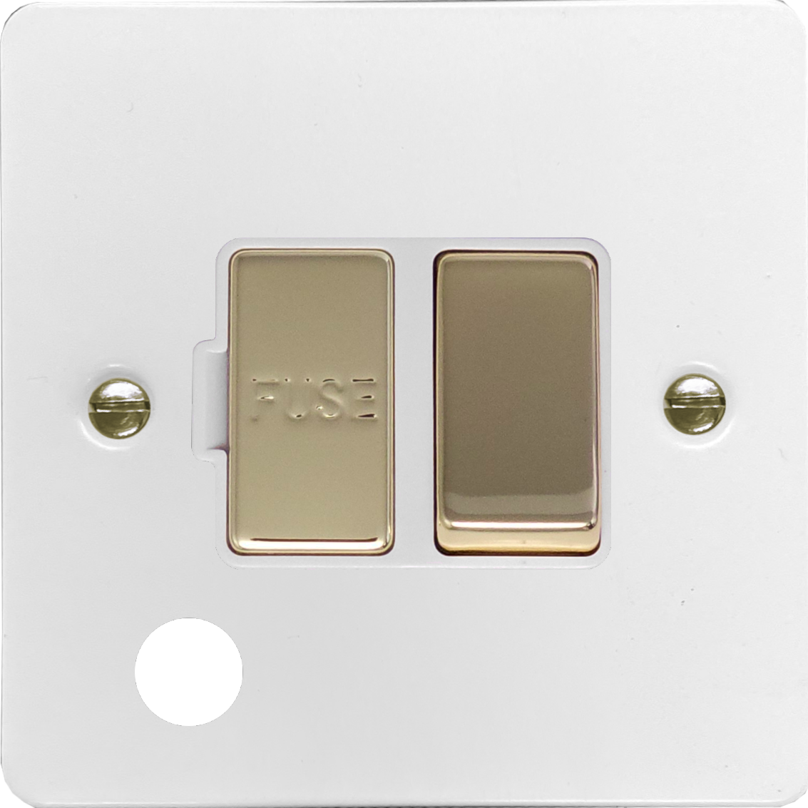 Flat White Switched Fused Spur (Spur Outlet/No Neon/Polished Brass Switch) FL.256PB.W