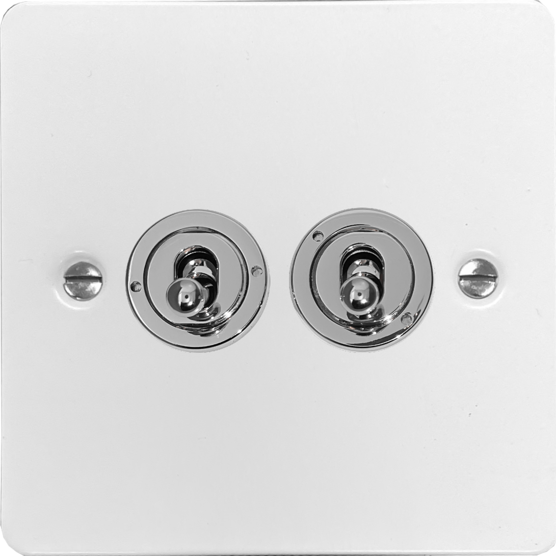 Flat White Toggle Switch (2 Gang/Polished Chrome Toggle) - FW382-PC