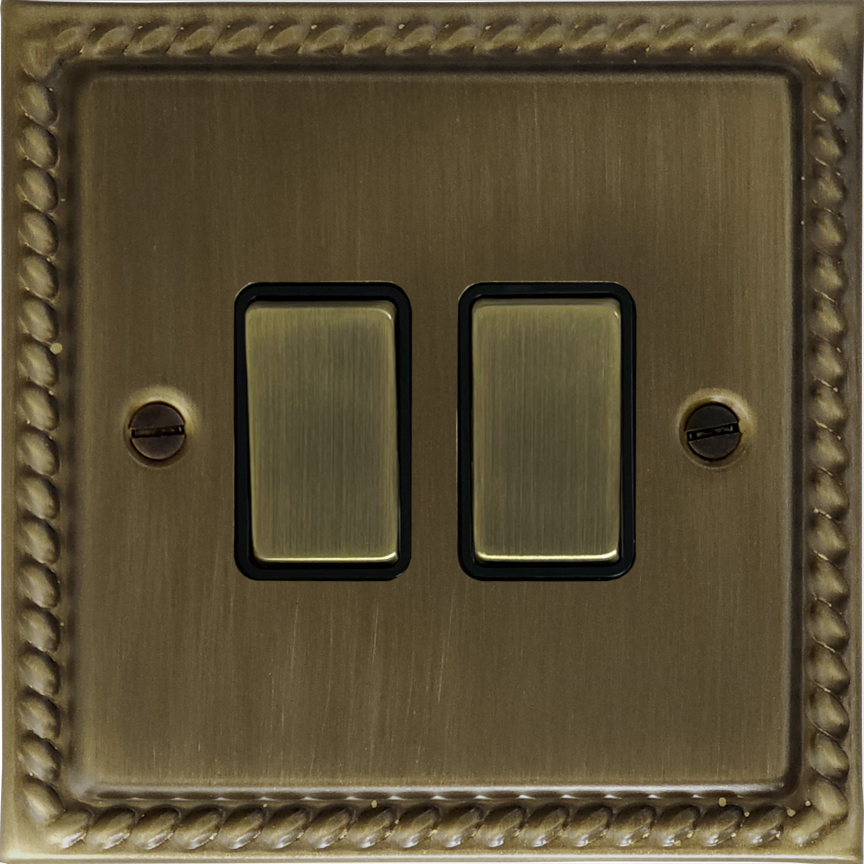 This is a two gang Georgian antique brass light switch from G+H Electrical Accessories.