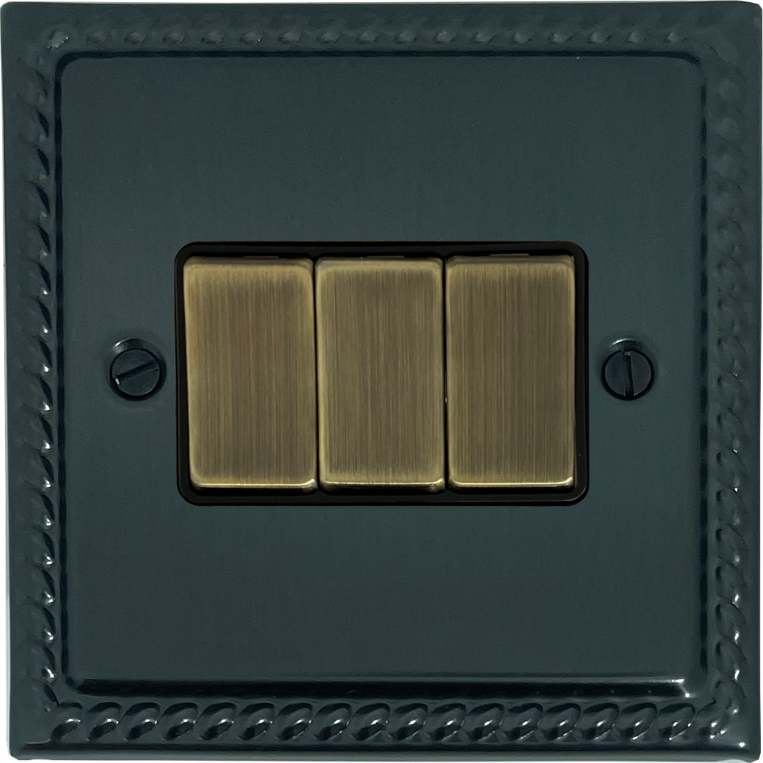 Georgian Black Bronze Light Switch (3 Gang/Antique Brass Switches) GE.303AB.BB