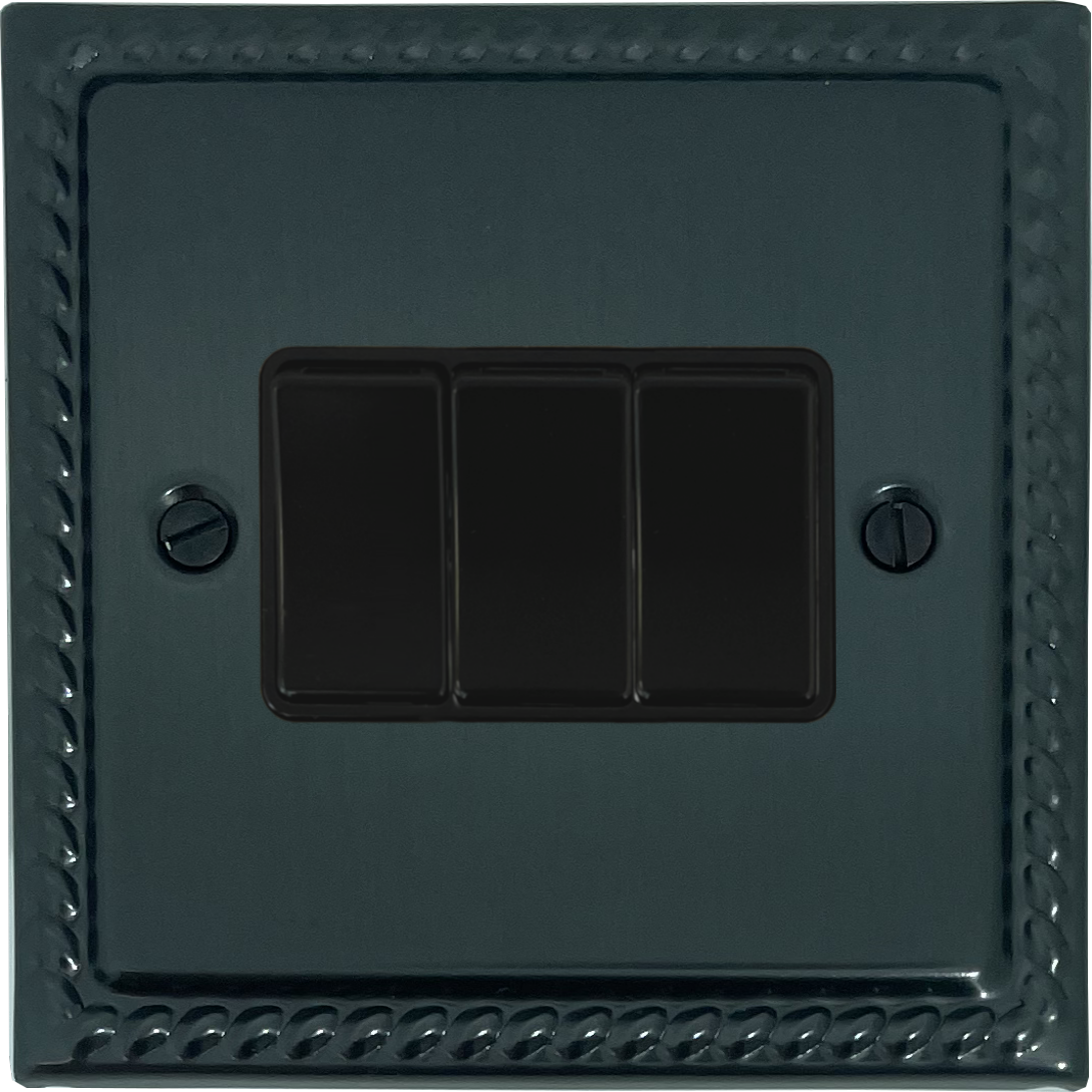 Georgian Black Bronze Light Switch (3 Gang/Black Switches) GE.3B.BB