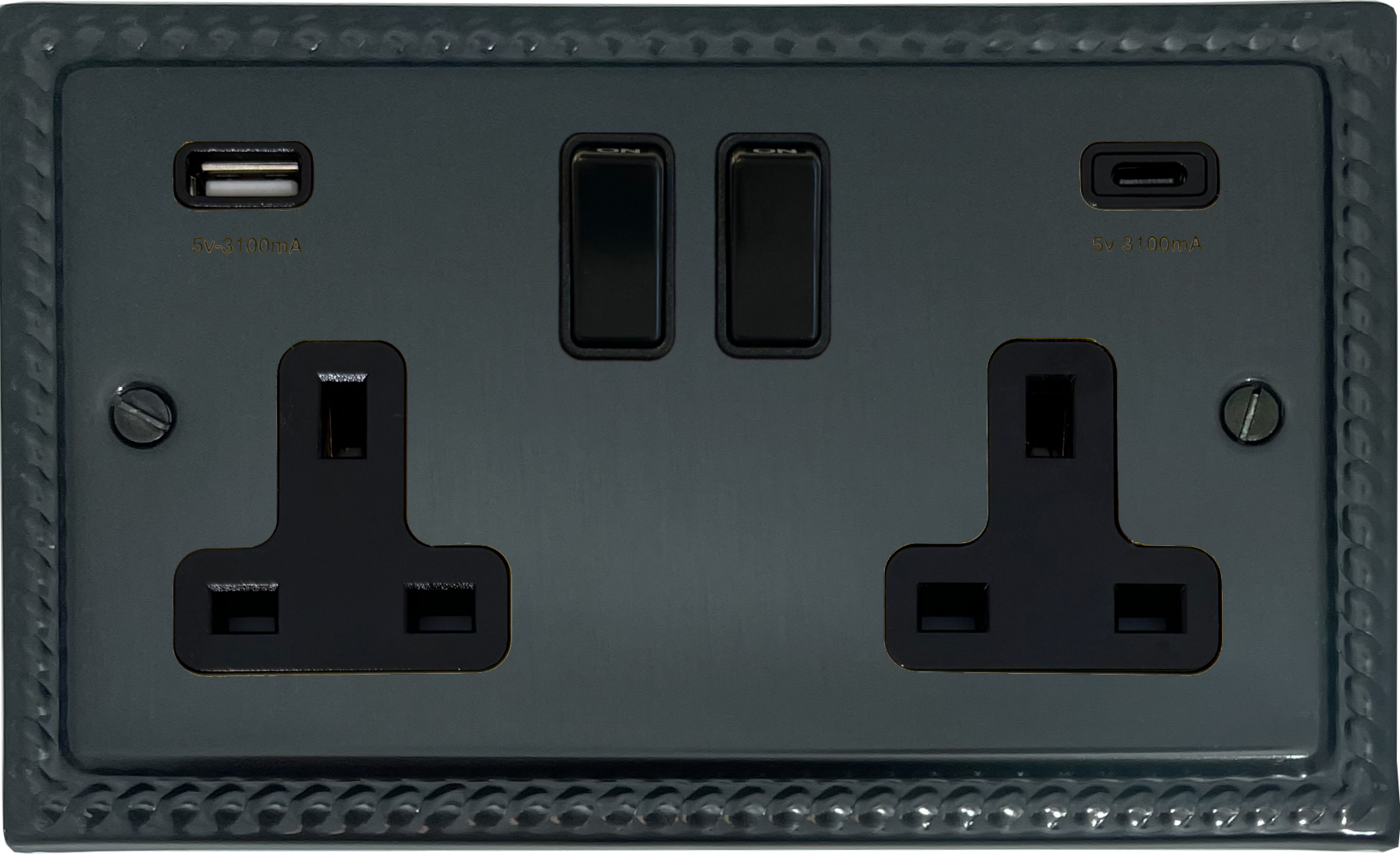 Georgian Black Bronze Socket with USB (2 Gang/USB-A and USB-C/Black Switches) GE.911B.BB
