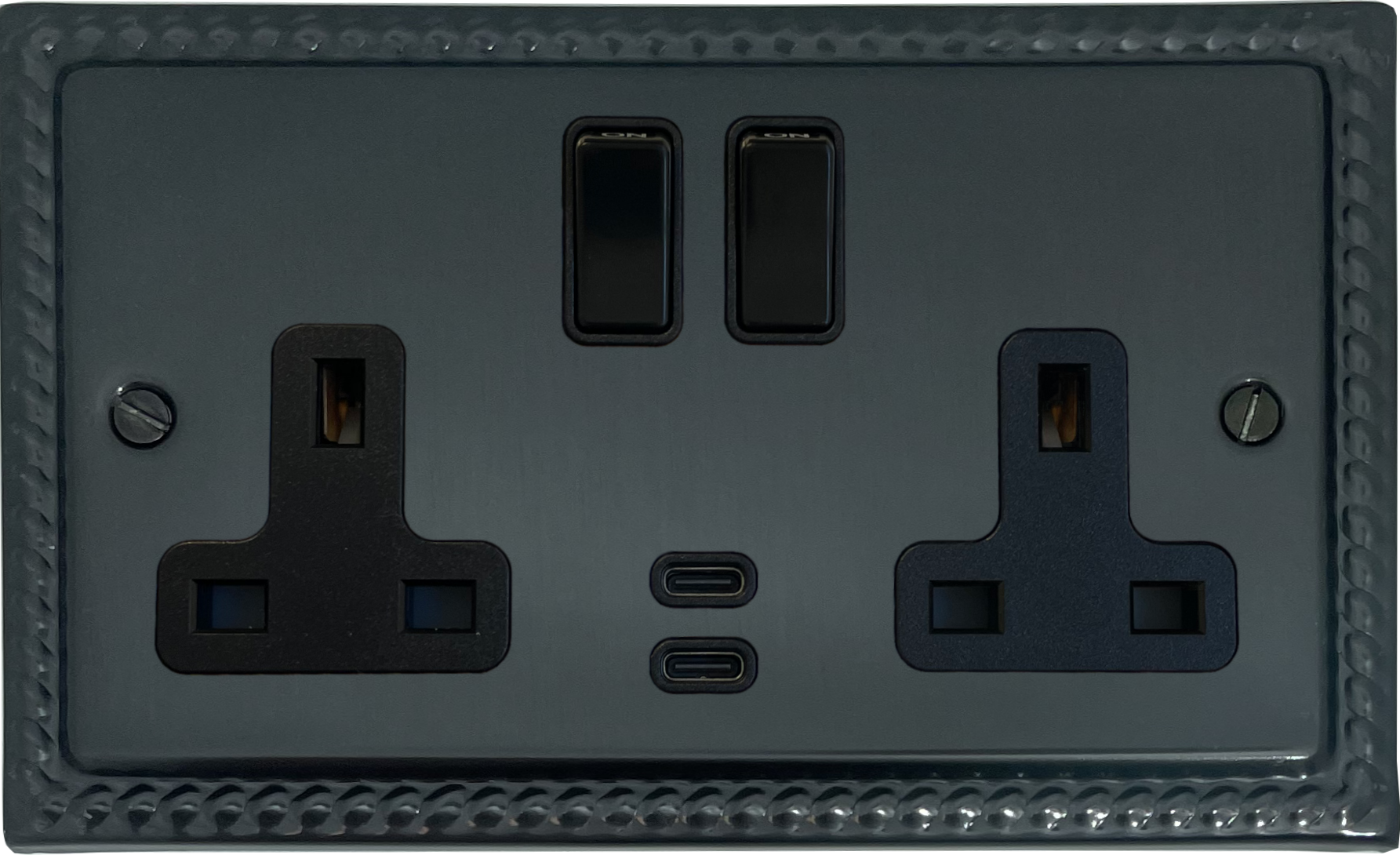 Georgian Black Bronze Socket with USB (2 Gang/USB-C/Black Switches) GE.913B.BB