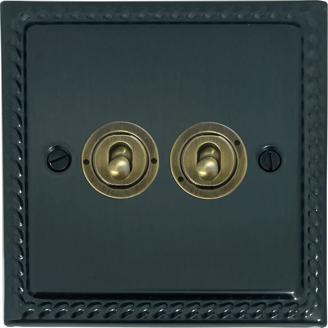 Georgian Black Bronze Toggle Switch (2 Gang/Antique Brass Toggle) GE.382AB.BB